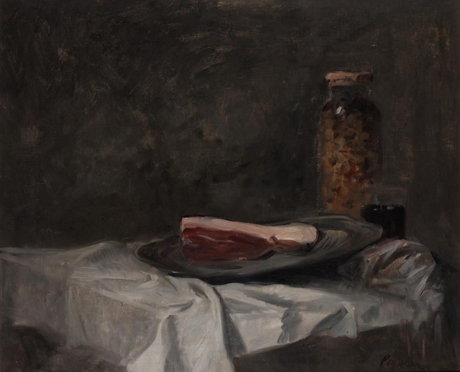 Jean-Louis Forain: 1xxx, Nature morte, xx, A2005/10/26 (iR11) Compare: S1874-R, Bouteille de Marasquin avec un paquet de biscuits.