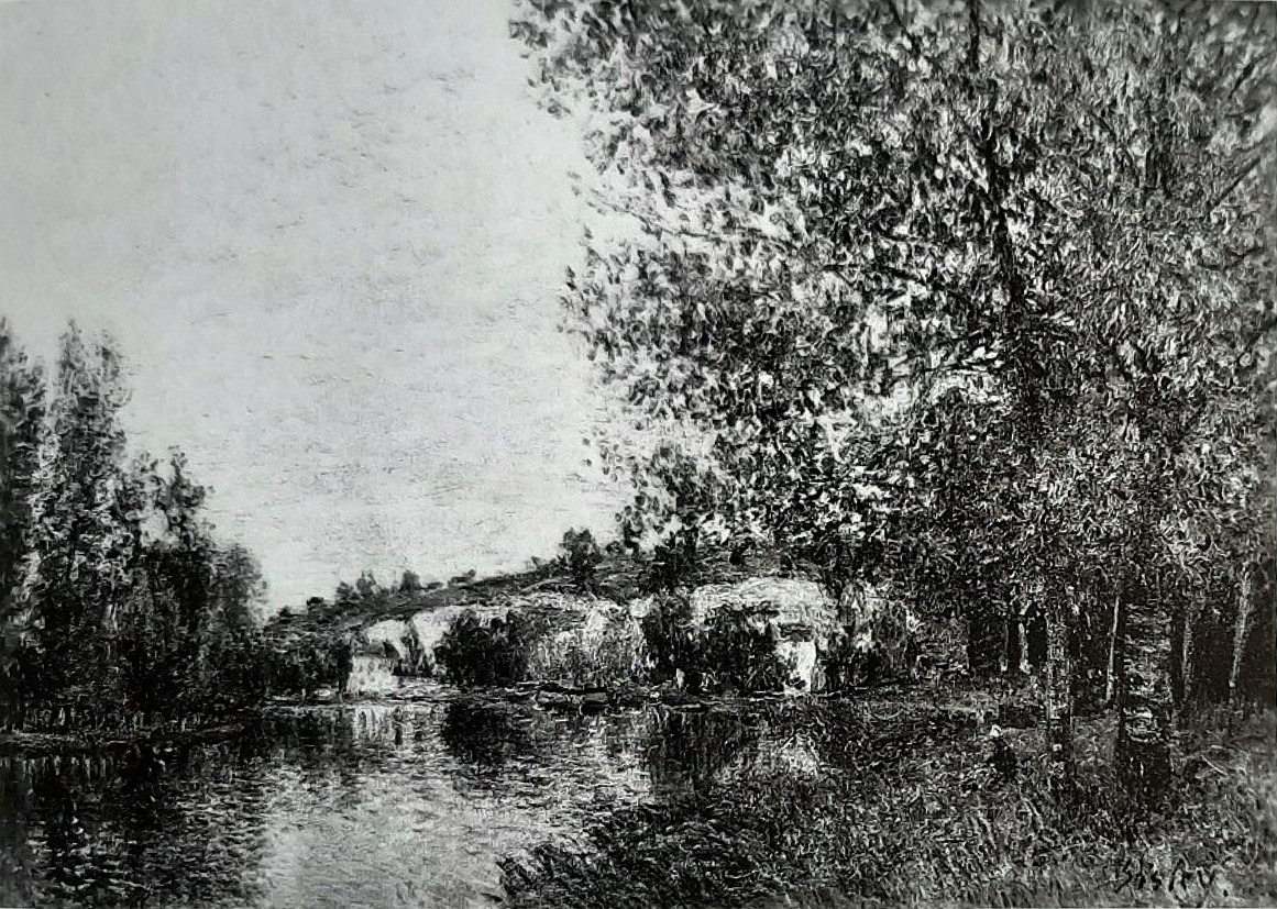 =? 1880ca, Sbr, CR386=CCPP388, Le Loing à Moret, temps gris, 65×92, A1962/04/10 (R396,no388;R129,no386), bought 1881 by Durand-Ruel.