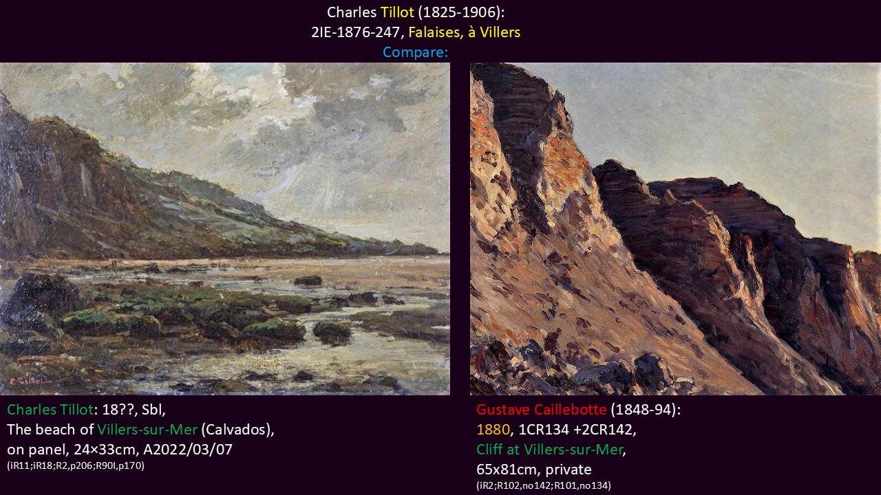 Charles Tillot (1825-1906): 2IE-1876-247, Falaises, à Villers. Compare painting Caillebotte and painting Tillot.