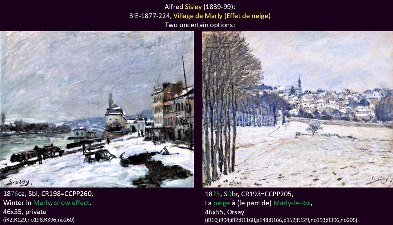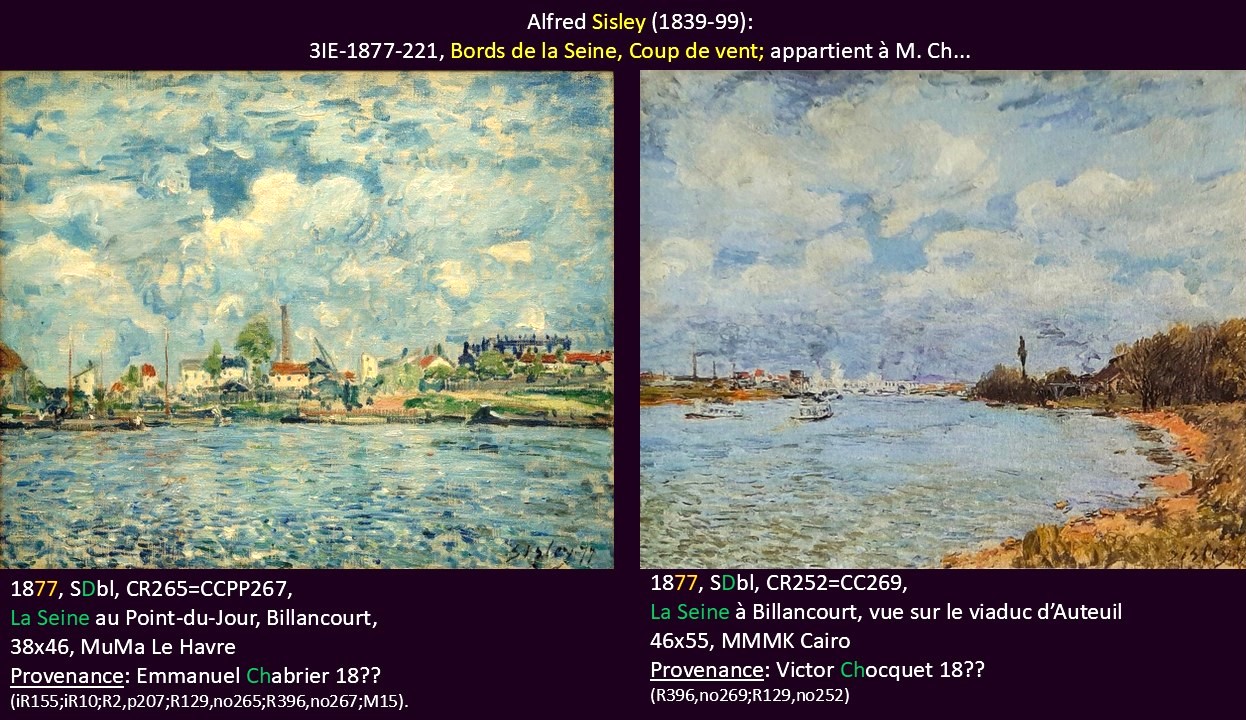 Sometimes I render a compilation of two pictures: no.218 +221 +224 +227 +227+hc1 (Sisley). The pictures I give to compare that are very weak are nos. 81 +82 +83 +84 +85 (Levert); 130 +131 + hc of Morisot; no. 209 +210+hc of Rouart.