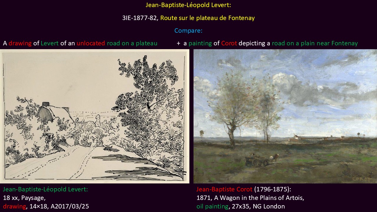 Jean-Baptiste-Léopold Levert: 3IE-1877-82, Route sur le plateau de Fontenay. Compare drawing Levert and painting of Corot.