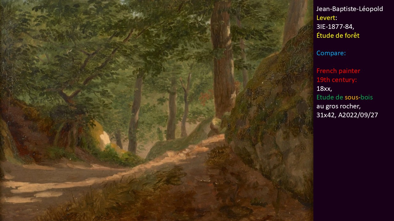 Jean-Baptiste-Léopold Levert: 3IE-1877-84, Étude de forêt. Compare painting of 19th century french painter.
