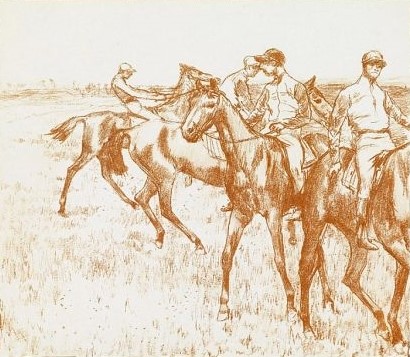 On this page you will find an accounted impression of the 10 art-works that were shown by Edgar Degas at the 1st ‘impressionist’ exposition in 1874 (catalogue numbers: 54-63). The suggestions of just 2 works are certain, for most of the other pictures I render more than 1 (very) uncertain suggesion, sometimes just to compare. I render the pictures in a thematical order. Note: If you double click on the first picture and then click on full screen, you can create a slideshow. On a smartphone or laptop you can also zoom in. Enjoy!