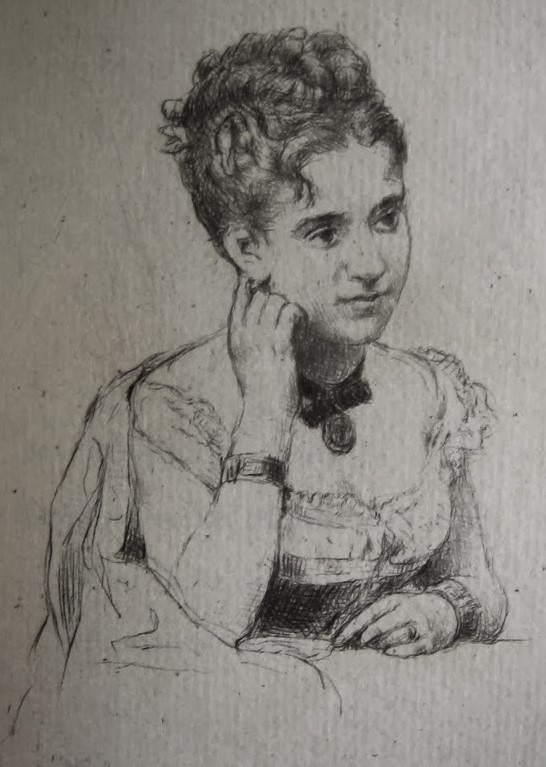 Marcellin Desboutin: Beraldi 14 = Clément-Janin 51: 1873, (La Duchesse) Princesse Colonna (born d’Affry; surnamed Marcello), etch 2/5, 23×17, BNF Paris (iR40;aR10,no55,R158,no51;R85V,no14;R90I,p71+99;R2,p161) =? 2IE-1876-68-1, Portraits et études (gravure à la pointe sec) =!? S1877-4392-9, Portrait de Mme. la duchesse Colonna, gravure à la pointe sèche