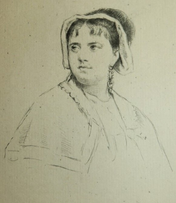 Marcellin Desboutin: 1876, Rosine Bloch (mezzo soprano 1844-91), ps after photo Pierre Petit, 12×8, BNF Paris (iR253;iR10;aR16;R85V,no134;R158,no189+p246;R90I,p71+99;R2,p161) =? 2IE-1876-69-1, Portraits et études (gravure à la pointe sec)