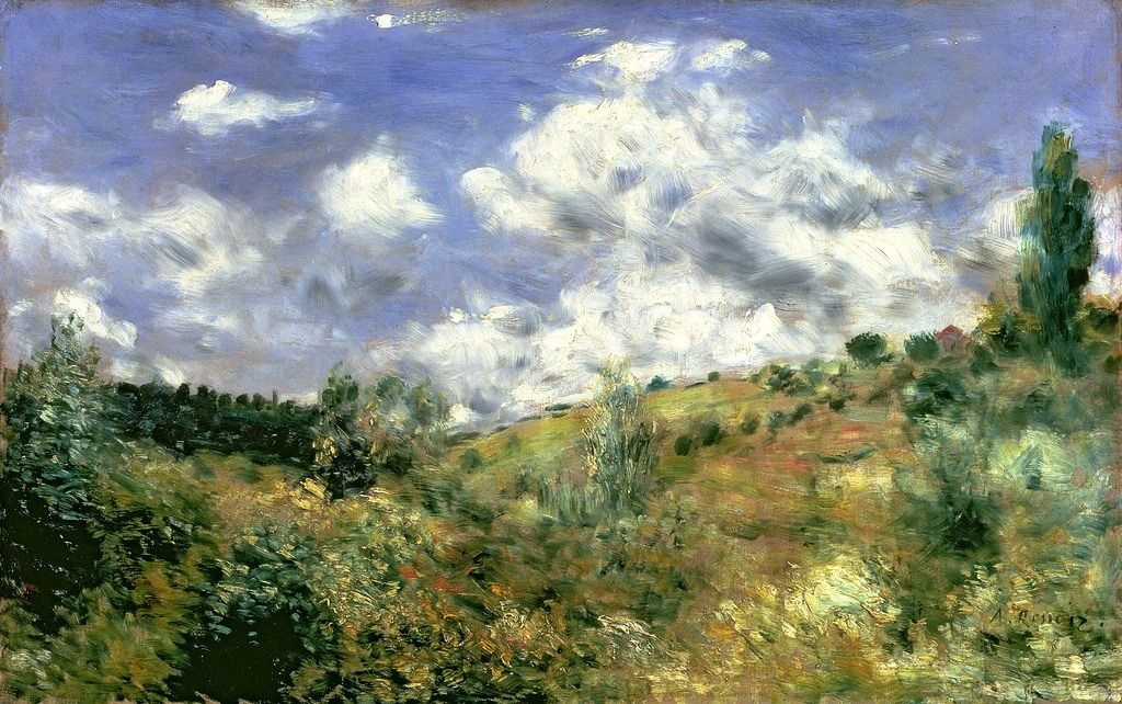Painting en-plein-air is an important characteristique of the impressionist painting style. The Impressionists wanted to catch the effect of the sunlight and the weather conditions on the colours in the landscape. Already in the early 1860’s Monet, Renoir, Sisley and Bazille, being pupils of Atelier Gleyre, went to paint in the open in the surroundings of the forest of Fontainebleau.