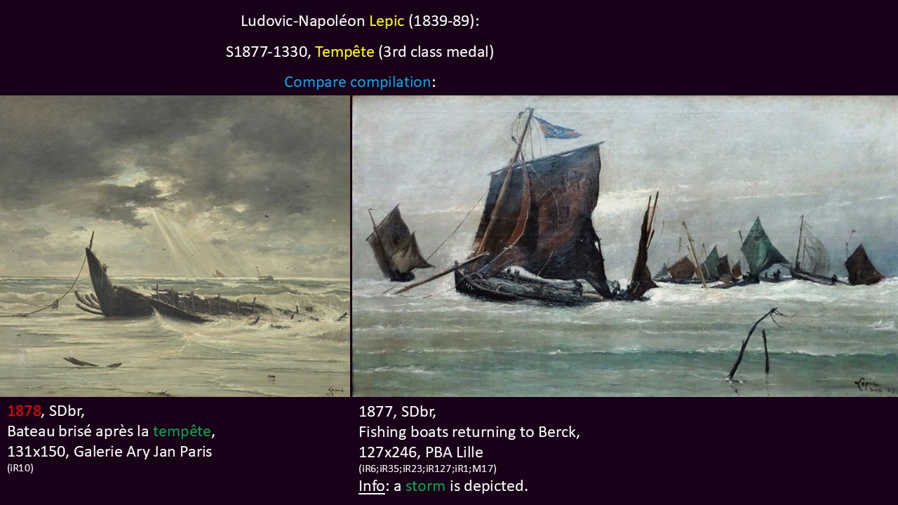 Ludovic Lepic (1839-89): S1877-1330, Tempête (3rd class medal). Compare compilation of two paintings.