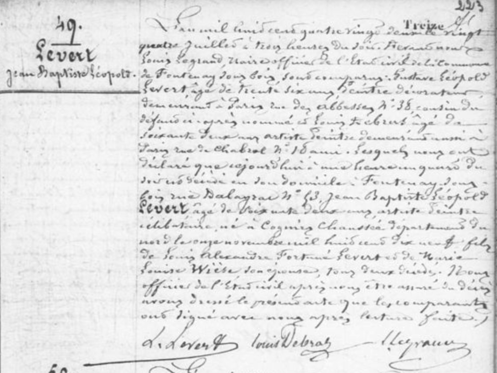 It is necessary to discern our Jean-Baptiste-Léopold Levert from his namesakes. The signatures Levert and L. Levert could also refer to Gustave-Léopold Levert or to Louis Levert.