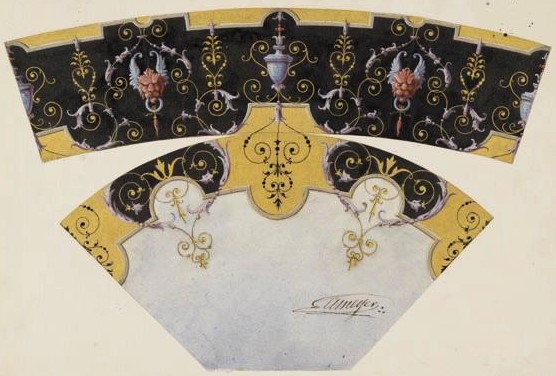 Claudius Popelin, who was born in 1825 and a pupil of Picot and Ary Scheffer. In 1862 Popelin had met with Regnault, who was director of the manufacture de Sèvres, Riocreux, the eminent conservator of the ceramic collections and Robert, the chef of the studio of painters. They agreed to ask Alfred Meyer to be the enamel teacher of Popelin. Popelin had learned all he wanted to know from Meyer, who also was a friend and adviser to him. They searched together to improve the application of enamal art. But already at the end of 1863 by a dispute the agreement between the two artists was broken.