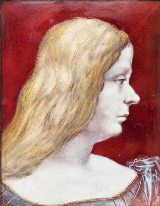 Still, at the Salon of 1864 the doors had opened for this kind of art and works of 8 artists were exhibited: Claudius Popelin, Ch. Lepec, Alfred Meyer, Mme Apoil, Mlle Lescuyot, Sturm, Grisée and Topart. Alfred Darcel praised in La Gazette the enamels of Meyer, who earlier was called by Le Comte de Viel-Castel the most skilful enamellist.