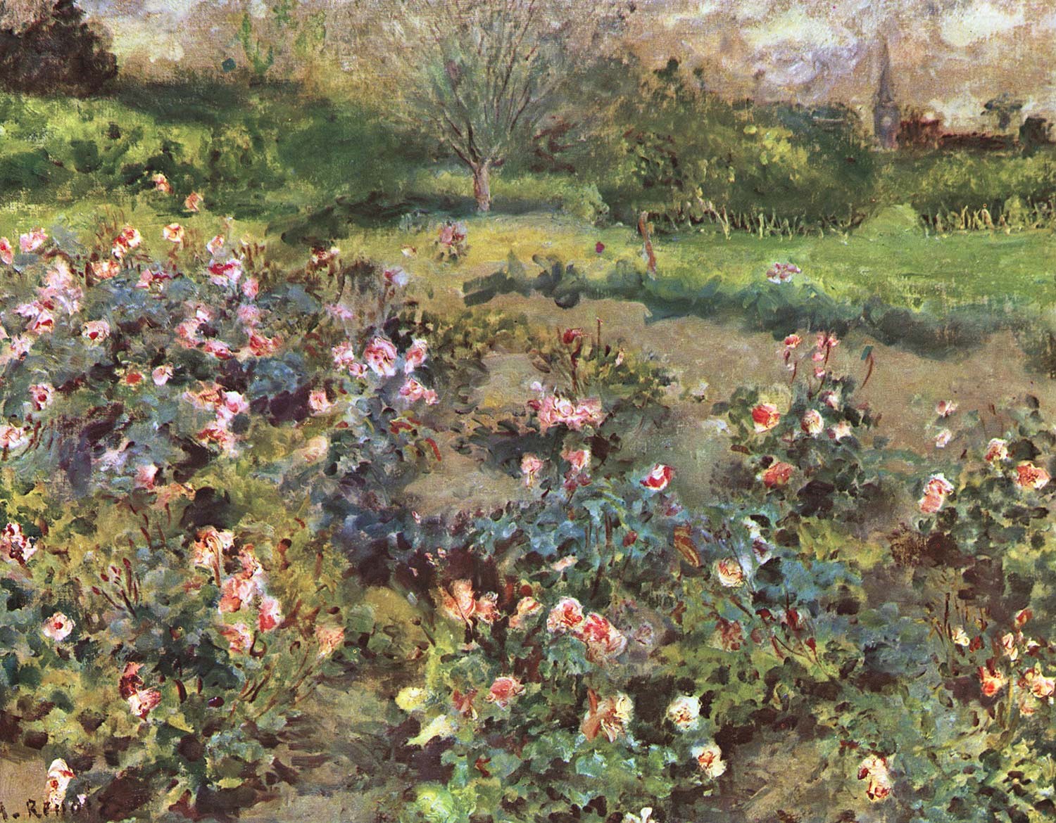 Auguste Renoir: 1870-74ca, Sbl, 1F117=2CR61, Rose bushes, 39×46, private (iR10;iR6;iR40;R30=193,no117;R185,no61;R88II,p452) =HD1875/03/24-50, Champ de rosiers (38×46) -> Petitdidier (75fr).