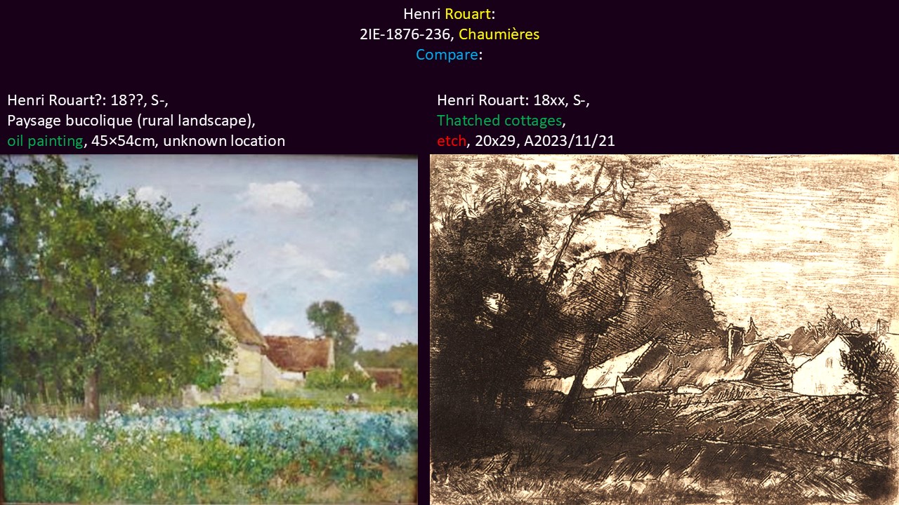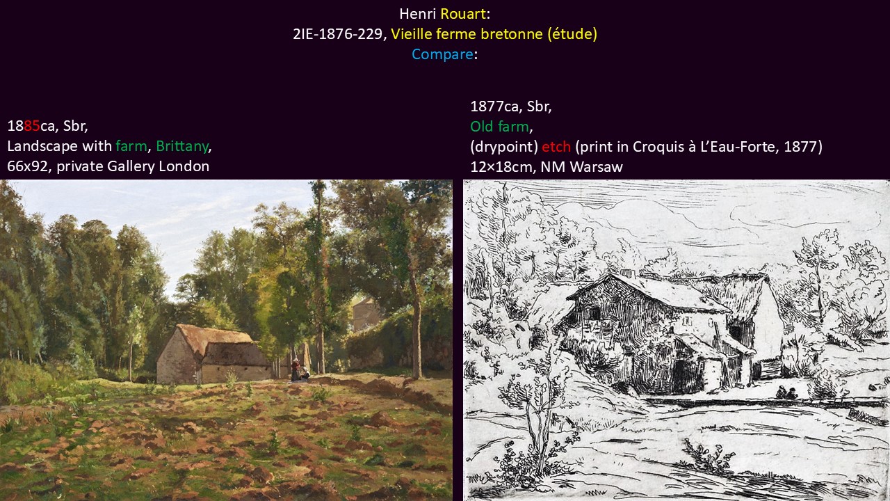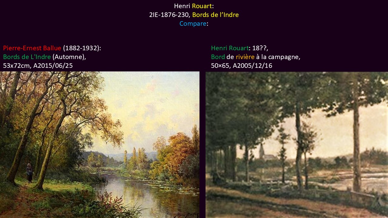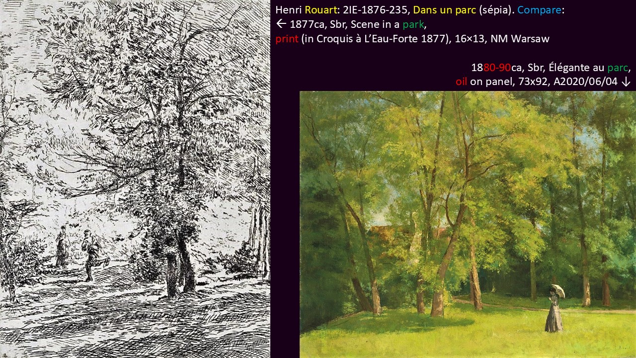 On this page you will find an accounted impression of the 10 art-works that Henri Rouart showed at the 2nd ‘impressionist’ exposition in 1876 (catalogue numbers 227-236). This included 2 drawings. There was just 1 review, rendering a general remark, so identification is very hard. I render to compare compilations of pictures. See my account. For info on the sources see at the bottom of the main page about Henri Rouart. Note: If you double click on the first picture of a group of pictures and then click on full screen, you can create a slideshow. Enjoy!