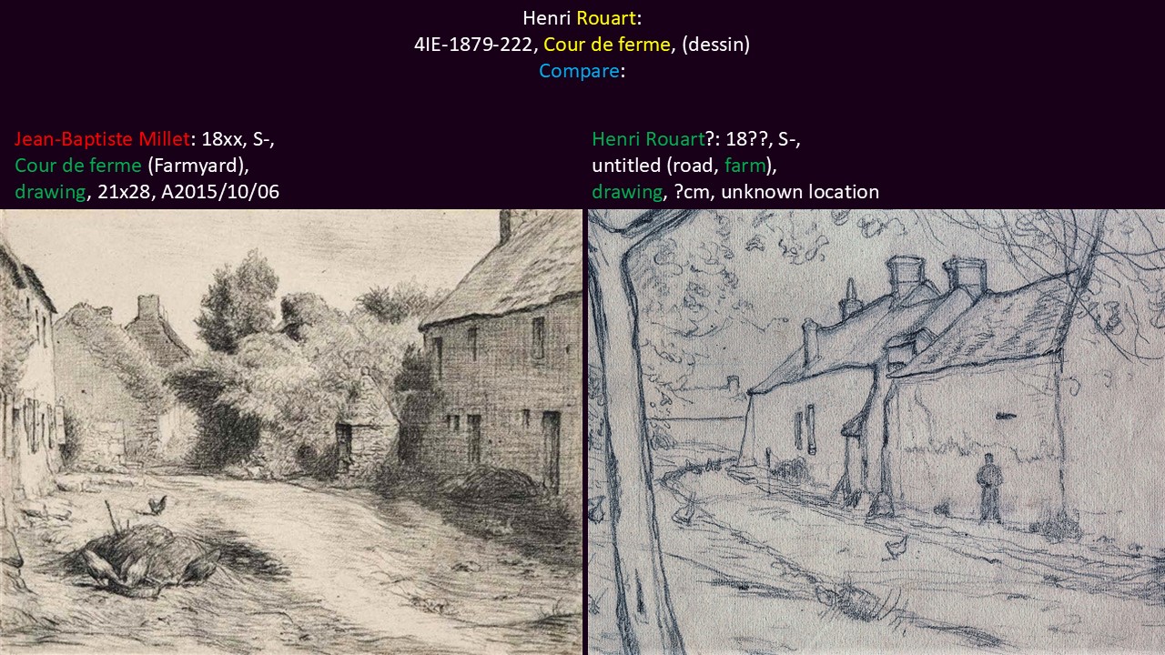 Henri Rouart: 4IE-1879-222, Cour de ferme, (dessin). Compare: