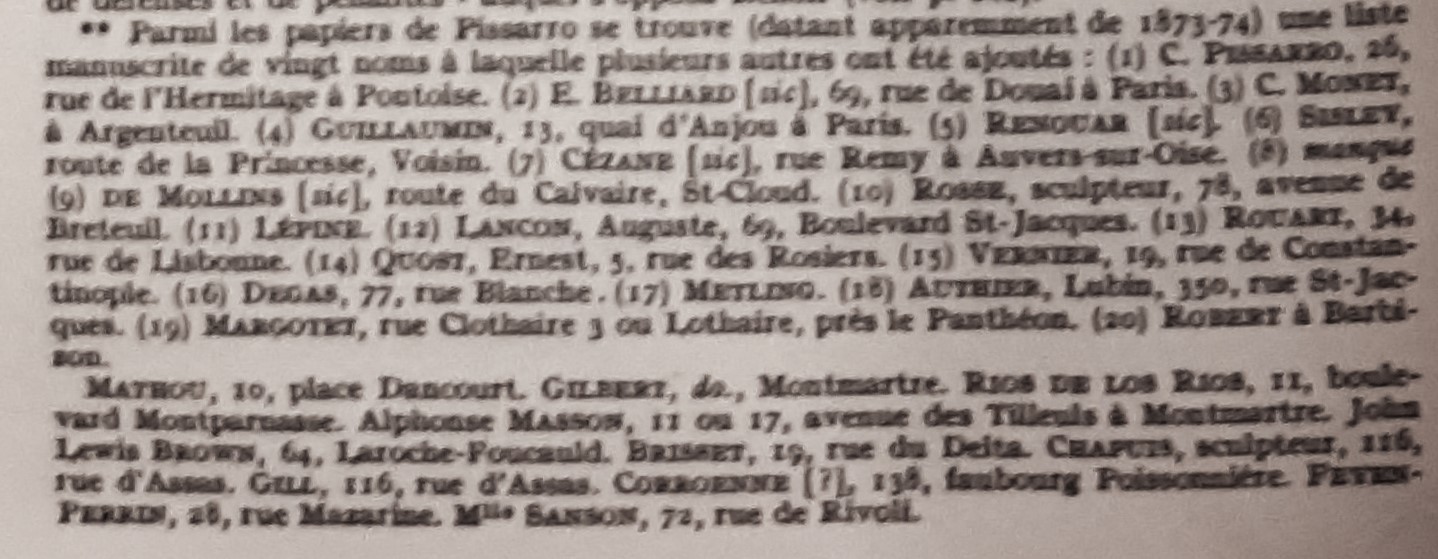There also were artists that weren’t mentioned by Paul Alexis and that weren’t in the 20+ list, who probably were approached in 1873 to join the Société…, but who refused. Several of them were mentioned in letters of Monet (R127I,p428/9).
