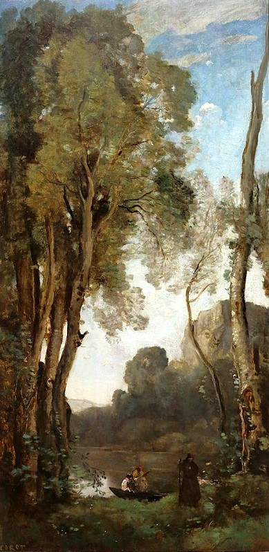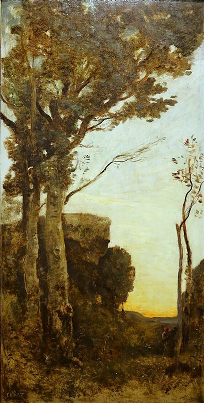 Corot (1796-1875): 1858ca, CR1104, The four times of the day, Evening, on panel, 143×72, NG London (iR6;iR2;M61;R119,no1104) Commission by A.G. Decamps.